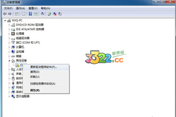 3.點(diǎn)擊其他設(shè)備,會出現(xiàn)一個(gè)名叫“One”的設(shè)備,當(dāng)時(shí)這個(gè)設(shè)備是感嘆號,也就是暫時(shí)不能使用,這時(shí)候鼠標(biāo)右鍵點(diǎn)擊One,并點(diǎn)擊更新驅(qū)動程序軟件