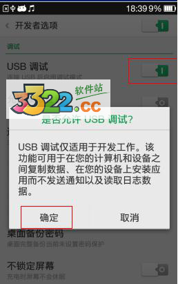 1、先在手機(jī)上打開USB調(diào)試:在設(shè)置--常規(guī)--最下方“更多”--開發(fā)者模式--打開USB調(diào)試--確定