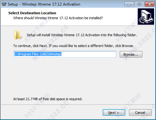 3.選擇安裝位置,默認(rèn)路徑為“C:\Program Files (x86)\Winstep”點(diǎn)擊“browse”可更改目錄,但是建議不要更改才好方便等下的破解操作,如kkx分享的截圖: