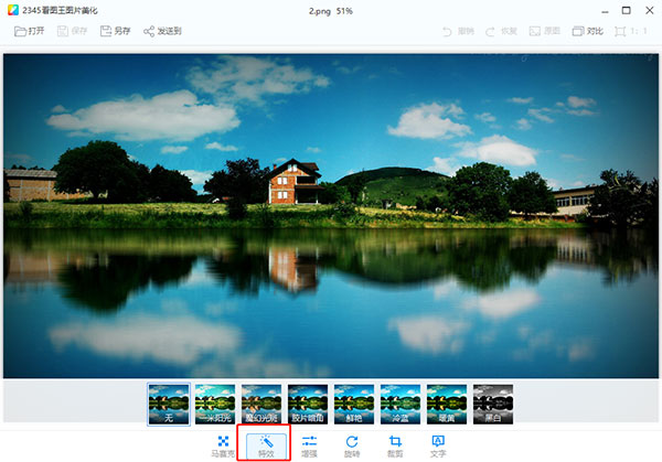 1)在圖片美化窗口點擊工具欄上的“特效”按鈕。