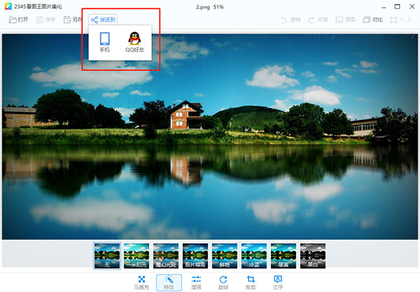 3)點擊圖片美化窗口左上角的發(fā)送到,可以直接分享給QQ好友。