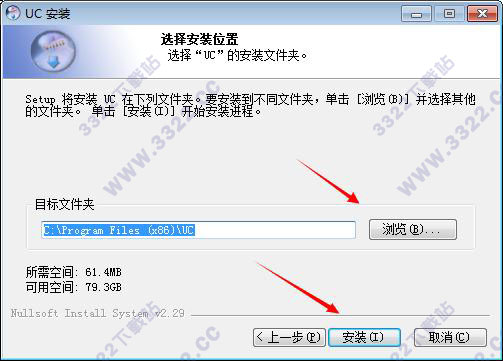 4、選擇UC2的安裝路徑,默認路徑為C:\Program Files (x86)\UC,不建議更改,若真要更改路徑可點擊瀏覽更好路徑,但同樣需要注意一定要記住所更改的路徑,