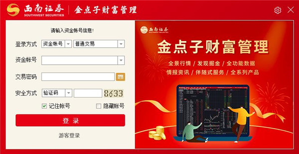西南證券金點子是原西南證券新干線的升級版,該工具是一款非常給力就特意為廣大投資用戶帶來這款由知名金融公司“西南證券”專門打造的新一代財富管理交易平臺——西南證券金點子財富管理終端,集行情、交易、資訊、服務、理財為一體的財富管理平臺。西南證券金點子主要運行與PC系統(tǒng)中,不僅下載極速、安裝簡單、擁有著極簡界面設(shè)計、和便攜易上手的操作力流程、能夠給你帶來全新的服務體驗。專注于專業(yè)客戶需求,極簡界面設(shè)計,集成行業(yè)領(lǐng)先的專業(yè)化功能,可以為用戶帶來了全新、貼心的網(wǎng)上理財交易服務,為廣大股民朋友帶來了出色專業(yè)的股票交易服務,讓你感受到與傳統(tǒng)網(wǎng)上交易系統(tǒng)截然不同的超值體驗之外,喜歡的朋友快通過kkx小編給大家分享介紹的西南證券金點子!
