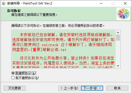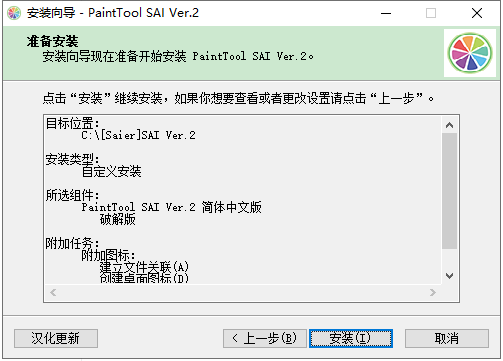 2、雙擊“[破解版]sai2-20200828.exe”依提示進行安裝;