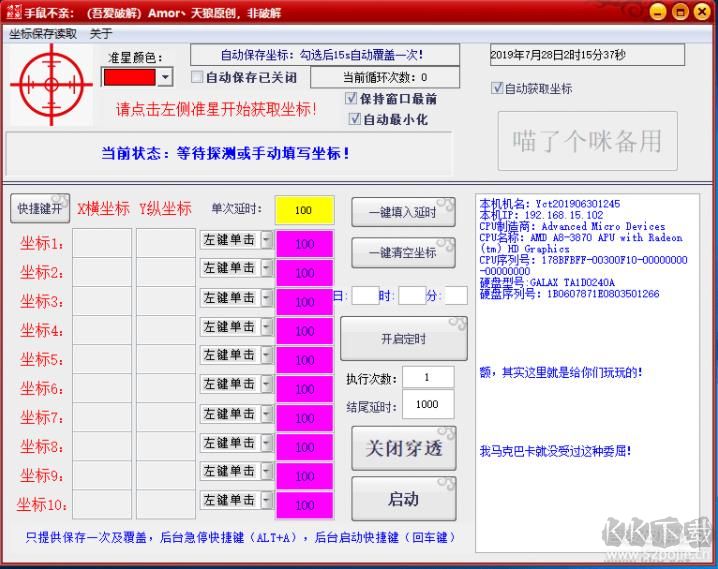 本工具僅供普通鼠標(biāo)模擬點擊,不要問我為什么進游戲就不工具的初衷只是為了讓大家的手不那么累,所以大家不要當(dāng)游戲外掛使用哈!