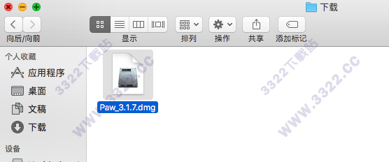 1、從本站下載完軟件資源包之后,將其解壓出來(lái),您將會(huì)得到一個(gè)名為“Paw_3.1.7.dmg”的可運(yùn)行程序文件,雙擊打開(kāi)運(yùn)行,如圖: