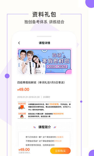 購買課程:十萬好評的四六級考研雅思系統(tǒng)課,任你搶,數(shù)百節(jié)高效有趣的公開課,隨你聽。
