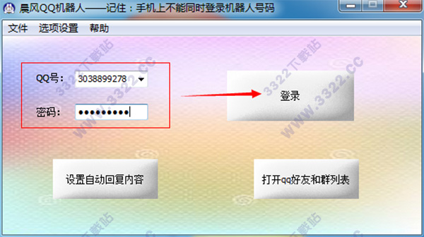 1、完成后啟動軟件,在主界面輸入你的QQ號和QQ密碼,然后點“登錄”按鈕,有可能會要求你輸入驗證碼(如果驗證碼輸入錯誤,請重新點‘登錄’按鈕再來一遍)。