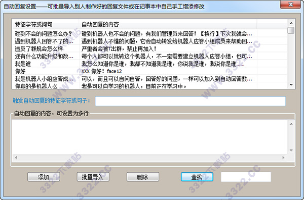 4、你也可以通過點“設(shè)置自動回復內(nèi)容”按鈕,進入自動回復內(nèi)容的設(shè)置。一個好的QQ聊天機器人,需要主人的不斷調(diào)教優(yōu)化哦。