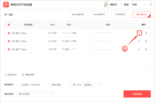 6、點(diǎn)擊【開始圖標(biāo)】逐個(gè)轉(zhuǎn)換文件;或勾選需要轉(zhuǎn)換的文件后,點(diǎn)擊【開始轉(zhuǎn)換】按鈕批量轉(zhuǎn)換文件,即轉(zhuǎn)換完成。