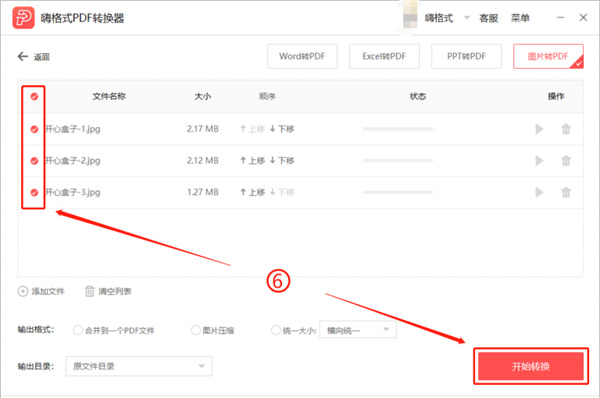 4、選擇需要的輸出格式——合并到一個(gè)PDF文件、圖片壓縮、統(tǒng)一大小,可多選;
