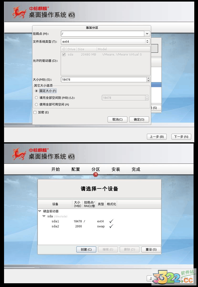 需要先建立2倍內(nèi)存大小的SWAP分區(qū).再建立/ 分區(qū)(建議20GB以上),/ 分區(qū)選擇在沒(méi)有數(shù)據(jù)的分區(qū)和未使用的分區(qū)上創(chuàng)建,避免損壞已有重要數(shù)據(jù)。