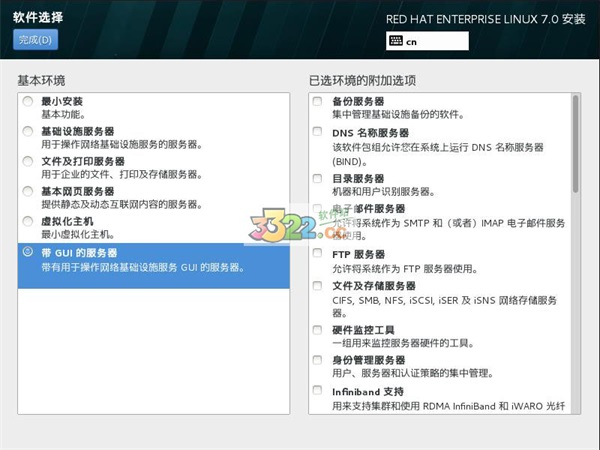 5、需要注意的是用戶如果需要桌面,那么不能夠使用最小安裝,必須在軟件選擇中選擇“帶有GUI的服務(wù)器”。