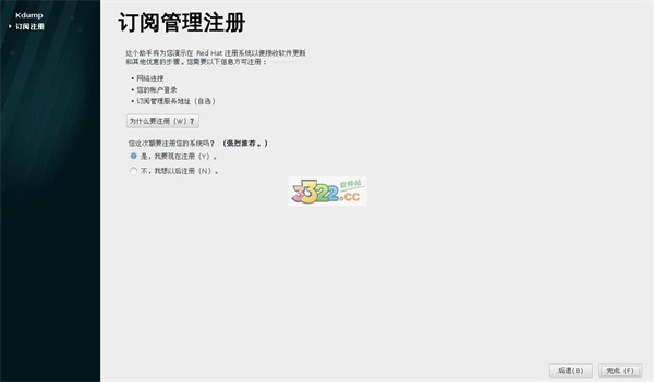 8、一些回饋信息的設(shè)置,已經(jīng)訂閱的注冊,用戶如果想要可以選擇啟用,訂閱管理的注冊需要注冊redhat的賬號,根據(jù)用戶需求選擇,不過貌似要錢。