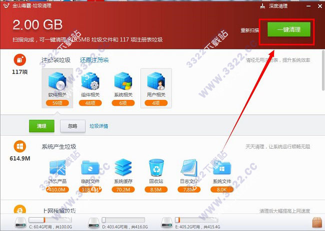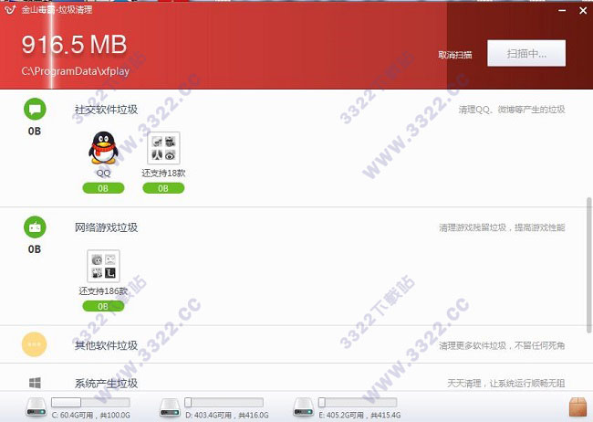 金山毒霸垃圾支持清理的項目