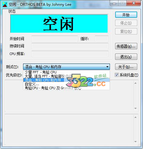 1、這次去掉了選擇CPU0和CPU1的選項(xiàng),運(yùn)行一個(gè)ORTHOS即可對(duì)CPU的兩個(gè)核心同時(shí)進(jìn)行測(cè)試,絕對(duì)達(dá)到滿載,測(cè)試壓力也更大,也更嚴(yán)格