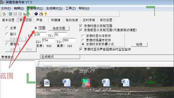 5、在“錄制目標(biāo)”這個界面,選擇范圍,會出現(xiàn)一個可以調(diào)節(jié)大小的方框,方框內(nèi)的內(nèi)容等一下會錄制下來。所以,根據(jù)自己的需要,調(diào)節(jié)方框。