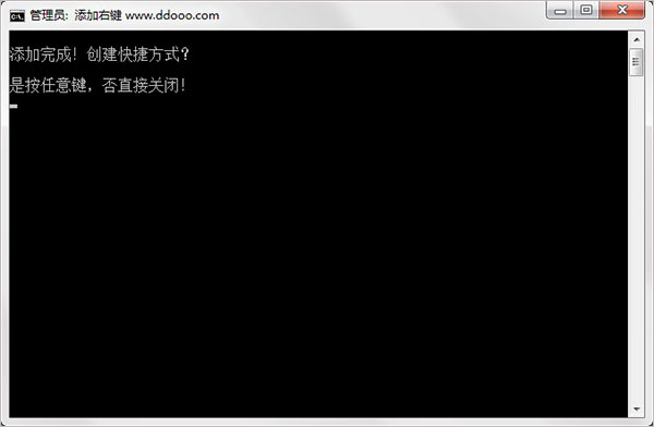 2、以管理員身份運(yùn)行"!添加右鍵.bat",等待添加完成,并創(chuàng)建快捷方法,按任意鍵即可;