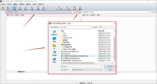 方法二、單擊“瀏覽文件”按鈕,然后打開系統(tǒng)文件夾選擇需要比較的表格文件。