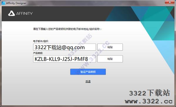 2、打開注冊(cè)機(jī),輸入:“3322下載站@qq.com”,點(diǎn)擊“GENERATE”得到產(chǎn)品密鑰