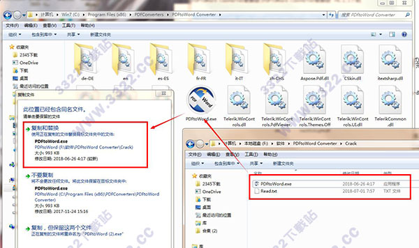 7、安裝完成后打開(kāi)安裝目錄,然后將數(shù)據(jù)包中crack文件夾下提供的破解文件“PDFtoWord.exe”復(fù)制到安裝目錄下,再按提示點(diǎn)擊復(fù)制和替換,安裝破解完成(切換中文界面方法:點(diǎn)擊tools——language——Chinese)