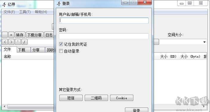 1、先要登錄你的百度帳號(這里小編建議大家創(chuàng)建小號來轉存下載),軟件提供了用戶、短信、二維碼、cookie多種方式登錄。