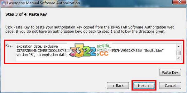 八、將文件中的注冊(cè)信息全部復(fù)制,并將其粘貼到“key”欄中,同時(shí)點(diǎn)擊“Next”