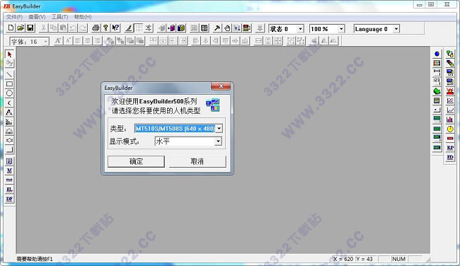 2、雙擊桌面上的步科觸摸屏編程軟件快捷方式,打開程序,這時候會彈出提示框,詢問“請選擇您將要使用的人機(jī)類型”,根據(jù)用戶的需要進(jìn)行選擇您將使用的觸摸屏類型,按下[確認(rèn)]即可進(jìn)入EB500編輯畫面