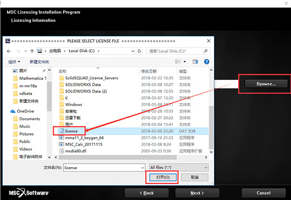 9、選擇在c盤生成的license.dat文件
