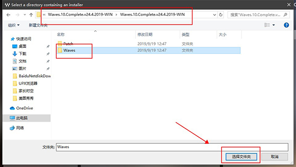 7、然后在辦展下載得到的waves10的包,直接選擇"Waves"文件因為其中包含了完整的waves 10插件離線安裝包;