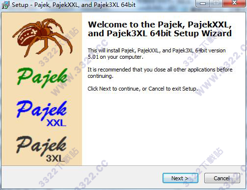 1、程序分為32位和64位,用戶需根據(jù)自己的操作系統(tǒng)進(jìn)行相應(yīng),如64位則雙擊運(yùn)行“Pajek64.exe”即可開始正式安裝