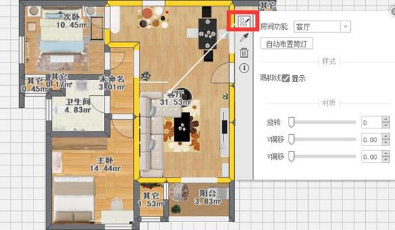 1、選擇想要設(shè)計(jì)地面拼花的空間,點(diǎn)擊畫區(qū)域功能