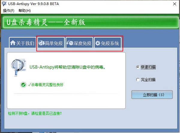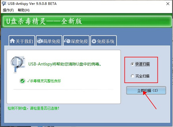 3、插入U(xiǎn)盤,然后選擇簡(jiǎn)單免疫或者是深度免疫;