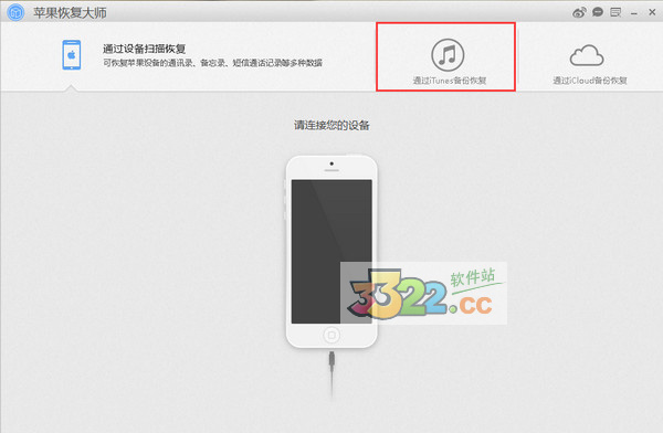 第一步,打開蘋果恢復大師,點擊【通過 iTunes 備份恢復】。