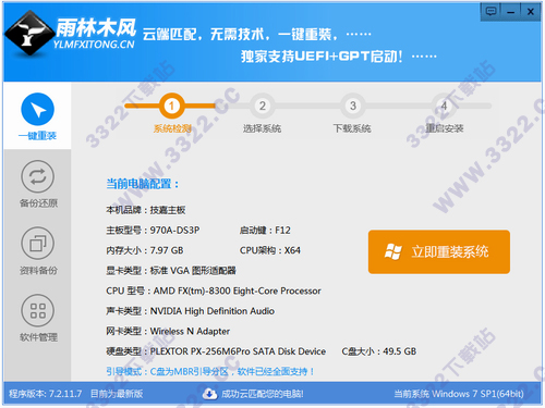 雨林木風(fēng)一鍵重裝系統(tǒng)工具是一款簡(jiǎn)單實(shí)用而且免費(fèi)的系統(tǒng)重裝軟件,相信大家到知道系統(tǒng)重裝的重要性,支持MBR,GPT/UEFI分區(qū),支持一鍵重裝的系統(tǒng)有XP、win7、Win8.1、Win10系統(tǒng)、win11系統(tǒng)!只要4個(gè)步驟,輕松搞定電腦重裝系統(tǒng)!當(dāng)您的電腦中毒了,文件損壞不能繼續(xù)使用、系統(tǒng)升級(jí)、更換新系統(tǒng)等都可以通過(guò)重裝系統(tǒng)解決,這款雨林木風(fēng)一鍵重裝系統(tǒng)就是能夠幫助用戶(hù)實(shí)現(xiàn)一鍵重裝的軟件,不需要任何專(zhuān)業(yè)技術(shù),按提示選擇你所需要安裝的系統(tǒng),然后耐心等待即可讓你的計(jì)算機(jī)“重見(jiàn)光面”!