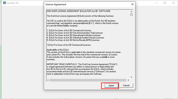 3、已經(jīng)是Lumion 10.5破解版了,無(wú)需任何破解,直接運(yùn)行點(diǎn)擊“agree”啟動(dòng)軟件。