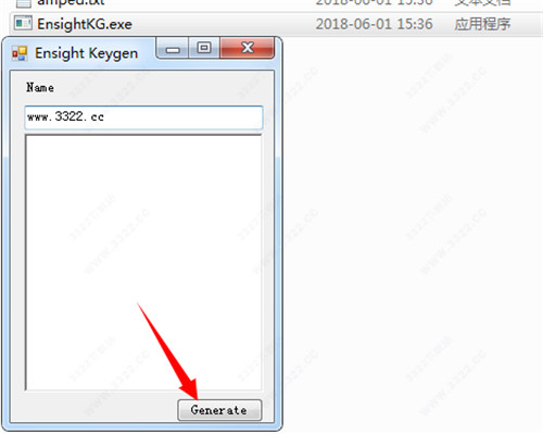 7、打開(kāi)“AMPED”文件夾,運(yùn)行“EnsightKG.exe”文件,輸入任意名稱,點(diǎn)擊“Generate”,將生成的注冊(cè)表保存在桌面上(建議保存桌面,方便尋找)。