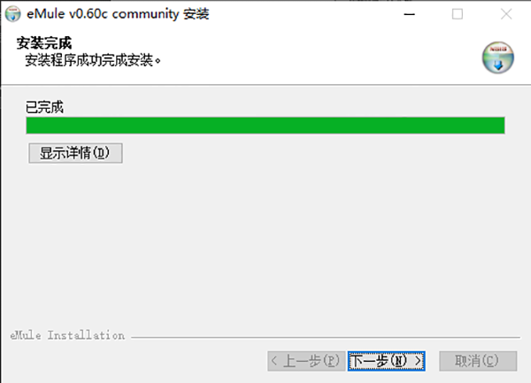 10、“eMule0.60c community”安裝程序結(jié)束,點擊完成,可以開始使用了。