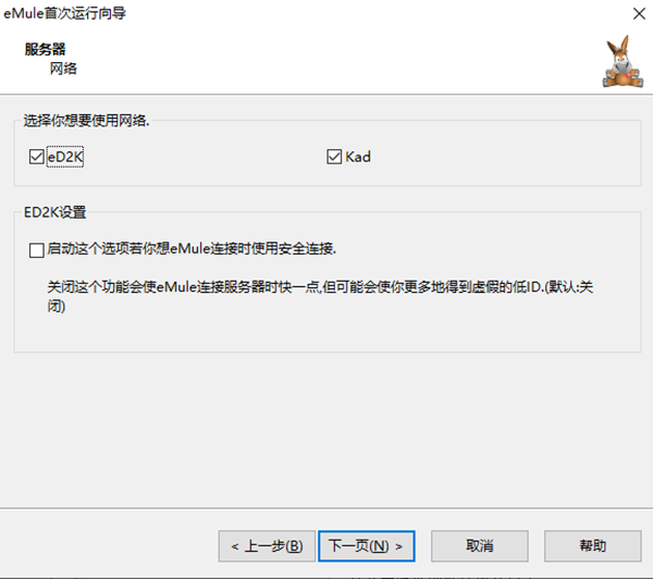 7、選擇使用的網(wǎng)絡(luò),默認勾選;ED2K設(shè)置,可以選擇勾選,點擊下一頁;