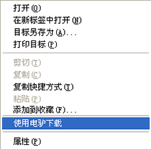 方法五:用右鍵單擊鏈接,選擇“使用電驢下載”來調(diào)用電驢進行下載。如圖所示。