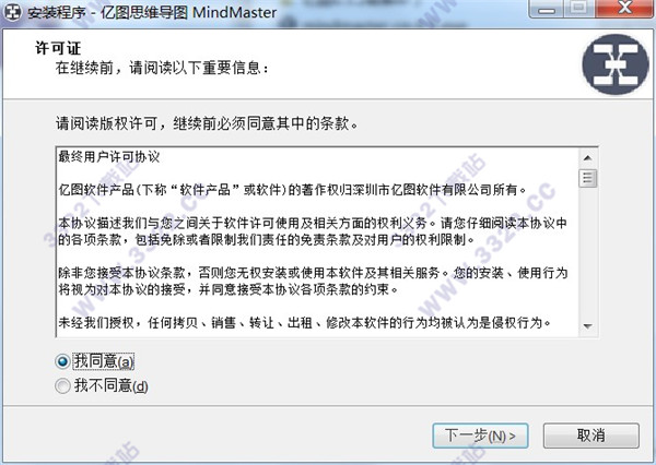 2、進(jìn)入安裝界面,查看用戶協(xié)議,點(diǎn)擊我同意,然后在下一步