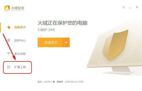 3、第三步,進(jìn)入火絨安全擴(kuò)展工具一欄,如圖示