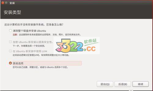 然后用戶看到系統(tǒng)的安裝向?qū)?,各個(gè)選項(xiàng)都十分的清楚,第一個(gè)就是給那些只是想要體驗(yàn)Ubuntu的用戶提供的,想要整個(gè)安裝就選擇安裝烏班圖。