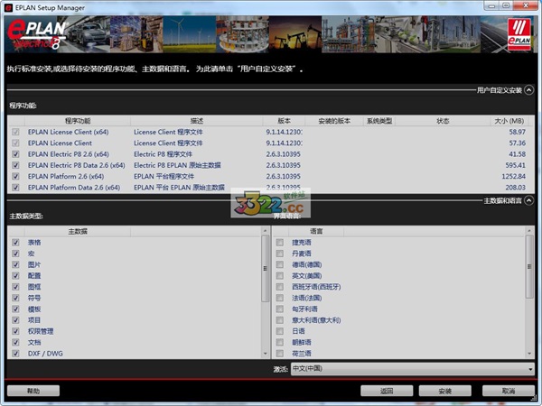 4、選擇安裝組件和相關(guān)數(shù)據(jù)信息。