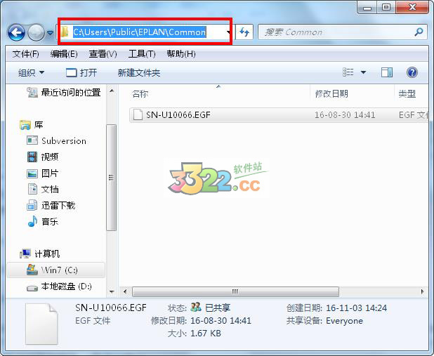 7、將安裝文件夾中的“破解文件”文件夾打開,將“EPLAN 2.6 SN-U10066”文件夾里的東西復(fù)制到C:\Users\Public\EPLAN\Common中,可能因計(jì)算機(jī)不同而異,用戶可以直接在C盤搜索EPLAN文件夾。