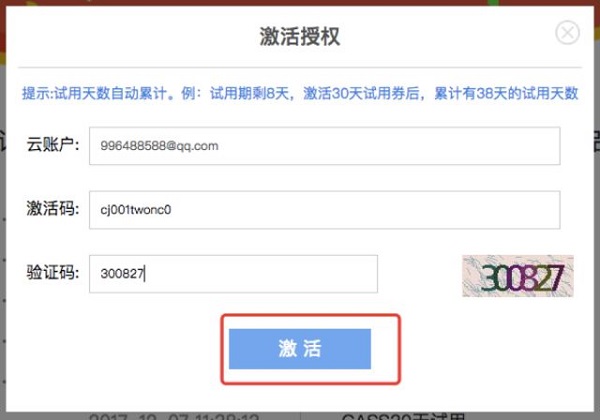 3、在中獎信息頁面找到相應需要激活的CASS試用劵,點擊藍字“激活授權(quán)“,如kkx分享的截圖: