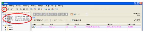 點擊工具欄中的“啟動接口”按鈕,接口啟動。點擊工具欄中的“開始抓包按鈕”,應用程序進入網絡監(jiān)聽狀態(tài)。