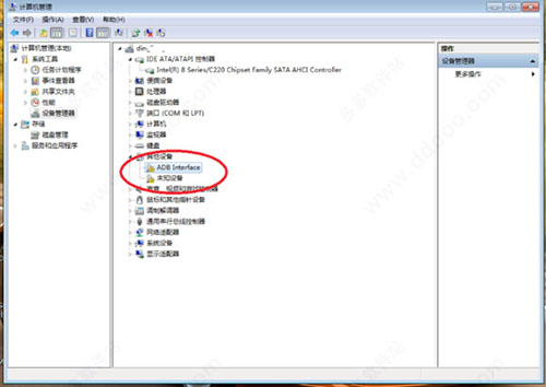 3、可以看到“adb interface”這里的顯示嘆號(hào)的,說(shuō)明adb驅(qū)動(dòng)沒有安裝;