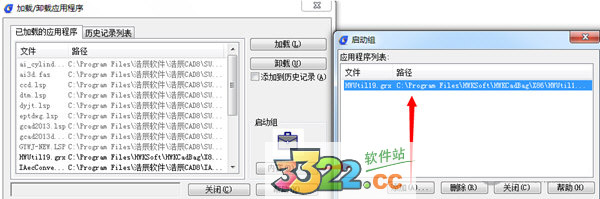 打開浩辰CAD8軟件,執(zhí)行工具---加載應用程序(或者命令行輸入ap),點擊啟動組下面的“內容”按鈕,點擊“添加”功能,找到豪沃克安裝目錄中的HWUtil19.grx文件(32位默認是在C:\Program Files\HWKSoft\HWKCadBag\X86,64位系統(tǒng)C:\Program Files\HWKSoft\HWKCadBag\X64),添加完成后,關閉重新打開浩辰軟件會自動加載豪沃克程序,并在菜單欄生成HWKSoft菜單。