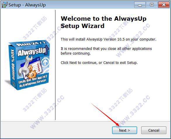 1、解壓安裝包,雙擊“AlwaysUp_Installer.exe”,等待片刻自動(dòng)彈出安裝界面,直接跳過(guò)點(diǎn)擊next